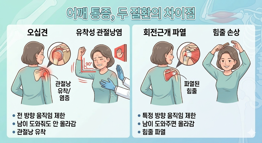 어깨 통증이 있을 때 많은 사람들이 오십견과 회전근개 파열을 혼동하기도 합니다. 두 질환 모두 어깨 통증을 유발하지만 원인과 특징에는 차이가 있습니다.